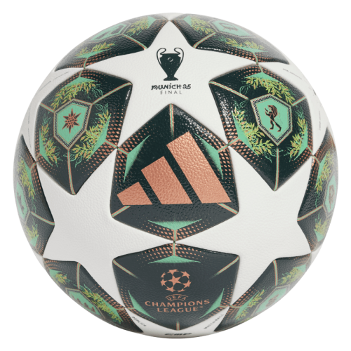 Táto futbalová lopta adidas UCL Competition sa inšpirovala oficiálnou zápasovou loptou vyraďovacej fázy Ligy majstrov 24/25. Zelená farba pripomína patinu mníchovských veží. Vysoko kvalitná duša a bezšvový plášť ti umožnia spracovať loptu s väčšou presnosťou. Táto lopta má certifikát najvyššej kvality FIFA.